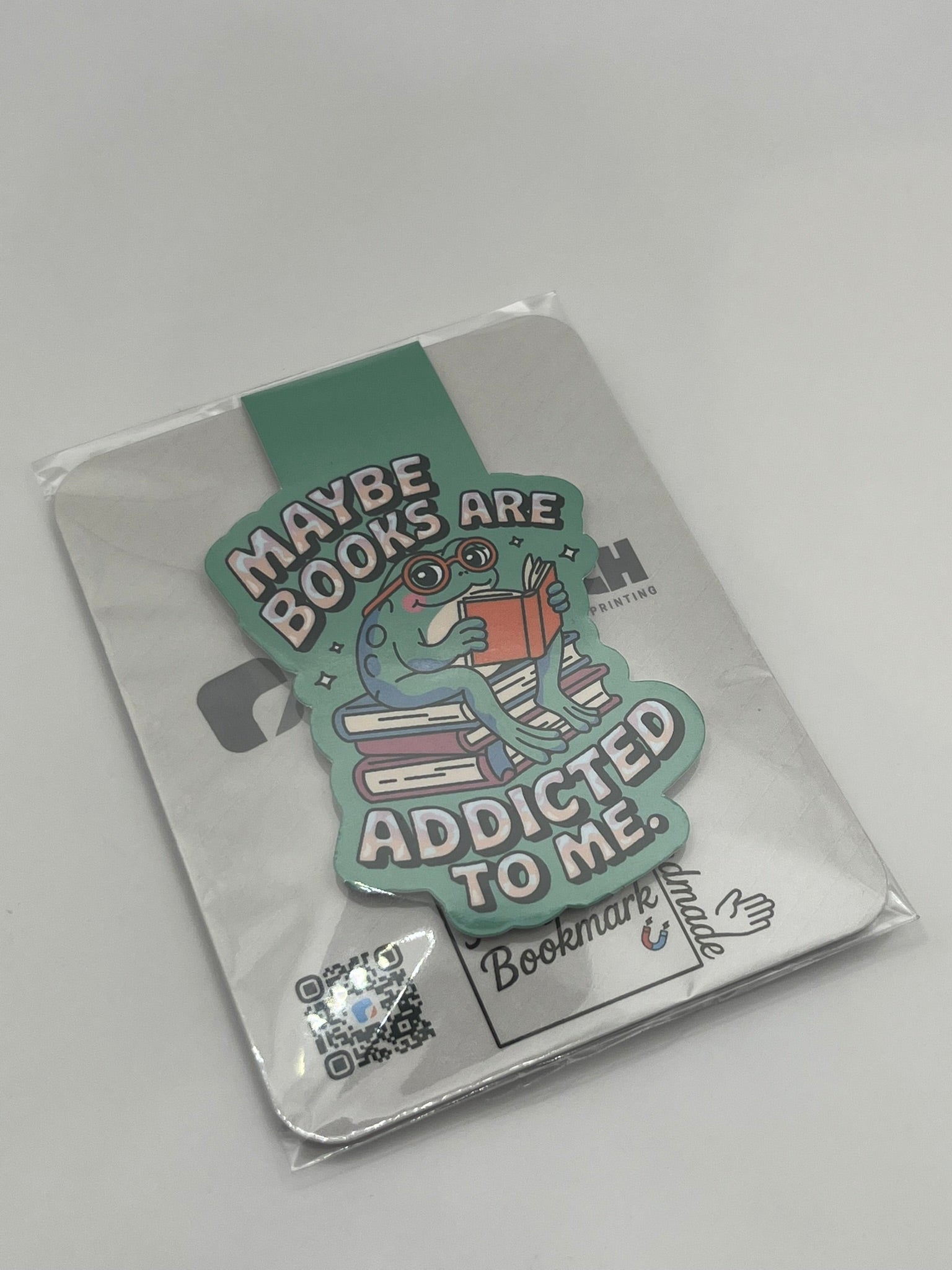 “Maybe Books Are Addicted to Me” Magnetic Bookmark – Froggy Reader Edition